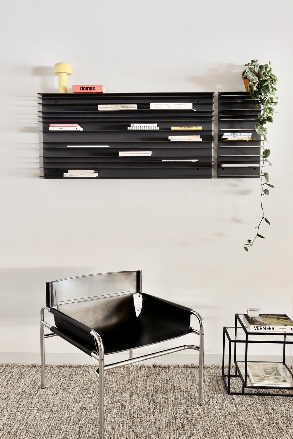 - Material descriptionFrame: high-gloss chromed steel // Upholstery: black saddle leather