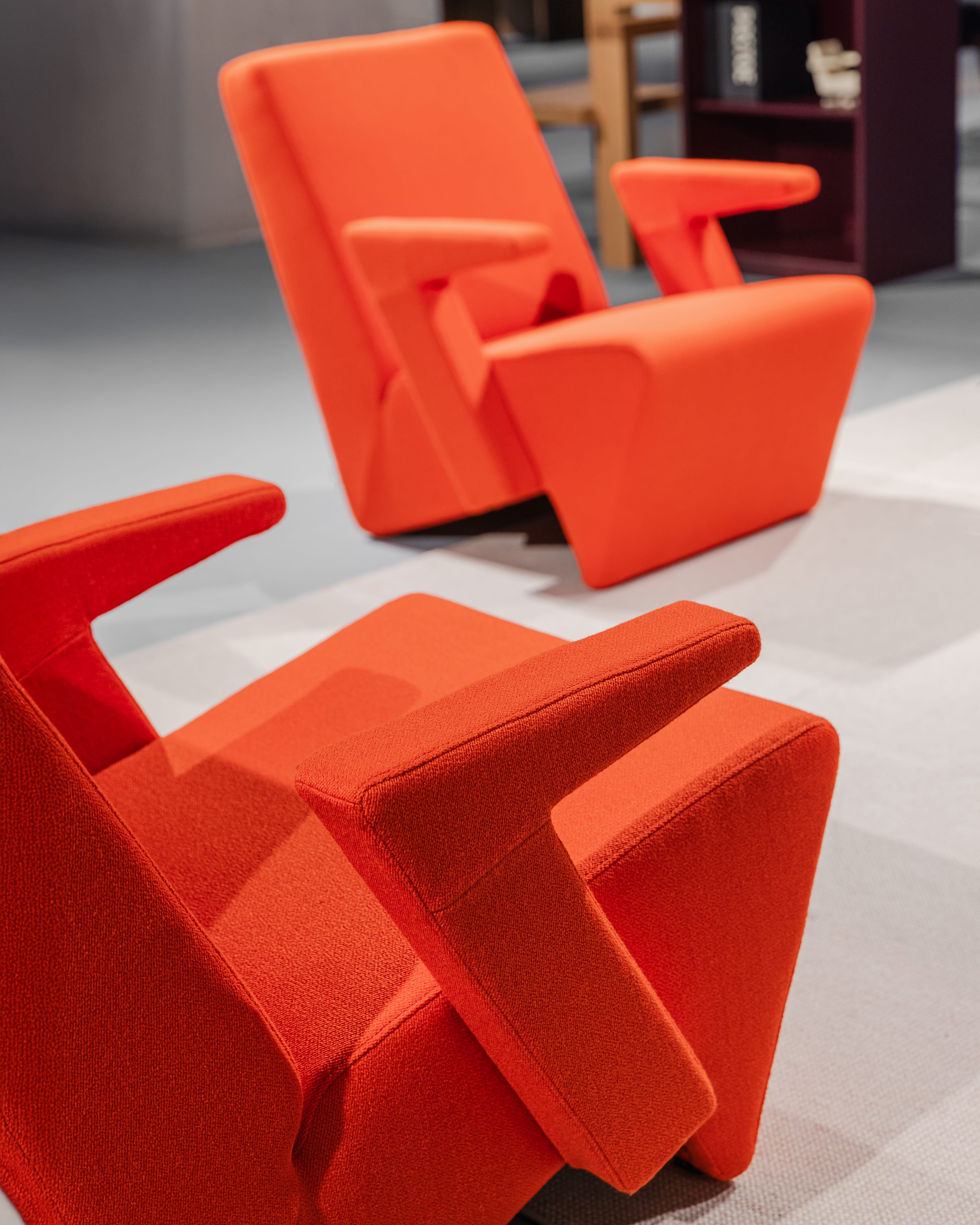Rietveld believed a chair should be an architectural object in space. The Zwaan embodies that conviction. Its form defines the room around it, while the carefully shaped seat provides excellent comfort.